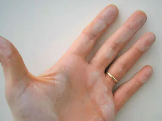 Mit der Hand über den Untergrund fahren. Wenn Verfärbungen auf der Hand sichtbar sind, ist der Untergrund kreidend oder mehlig.